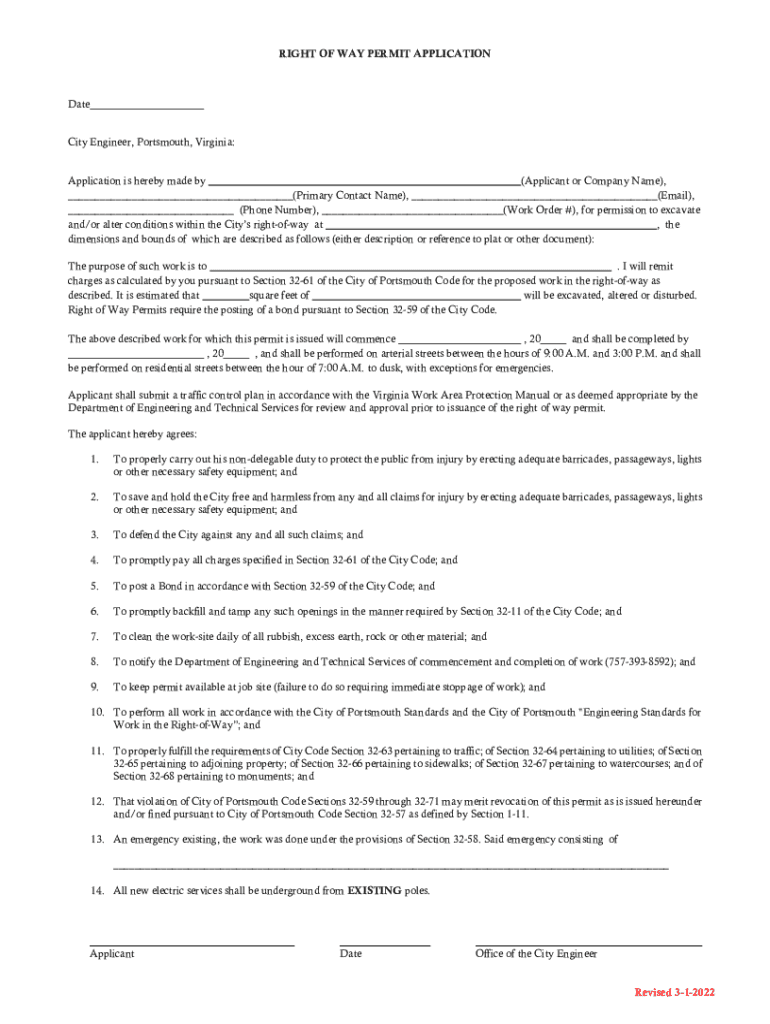 Get the free Permit ApplicationsCity of PortsmouthLand Use Permits - Virginia Department of Trans...