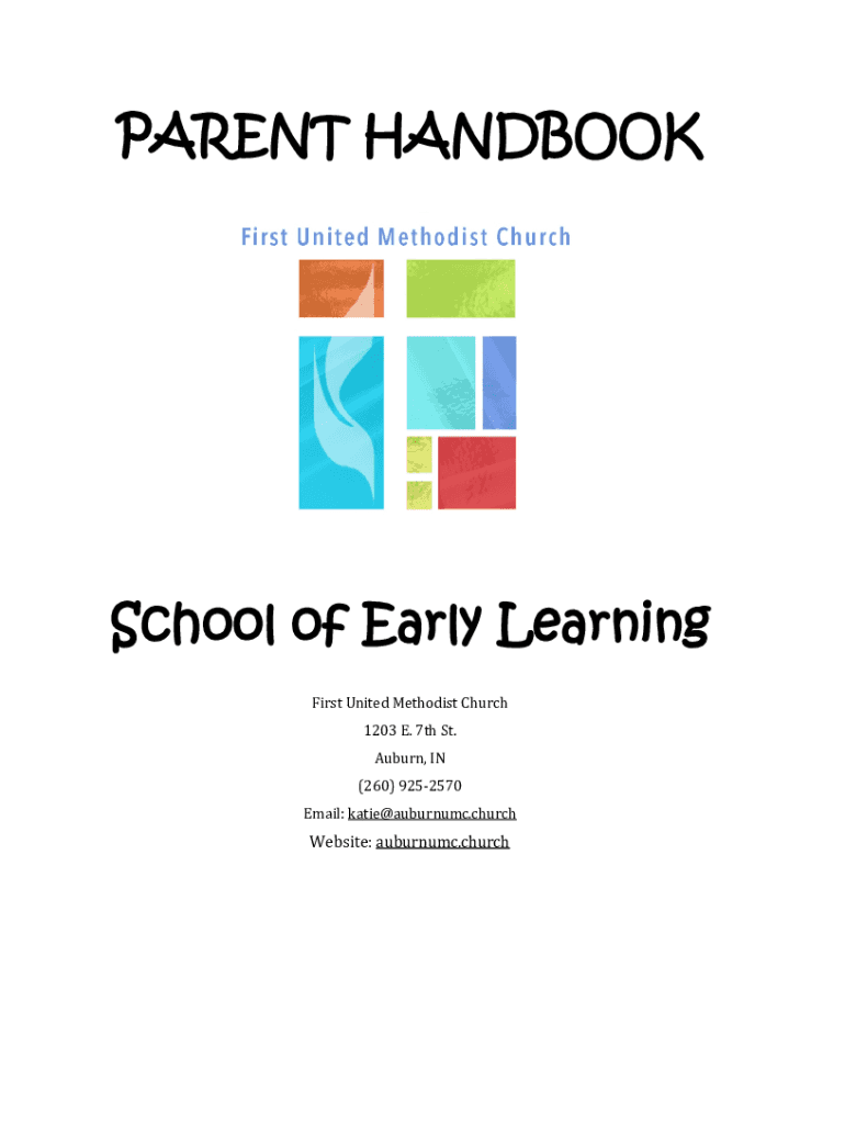 PARENT HANDBOOKSchool of Early Learning First United Methodist Church 1203 E. 7th St. Auburn, IN(260) 9252570Email: katie@auburnumc.churchWebsite: auburn.churchCONTACT INFORMATION First United Methodist