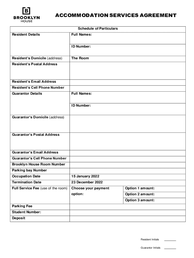 Get the free brooklyn-house.co.za wp-content uploadsACCOMMODATION SERVICES AGREEMENT - Brooklyn H...