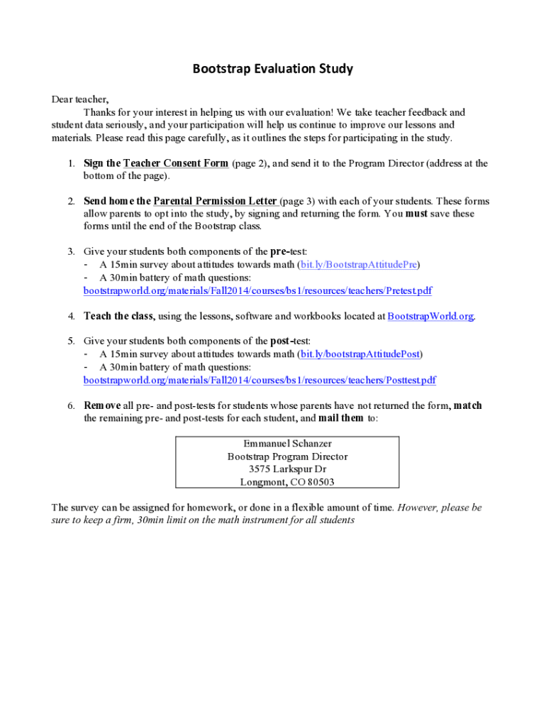 BootstrapEvaluationStudy Dear teacher, Thanks for your interest in helping us with our evaluation! We take teacher feedback and student data seriously, and your participation will help us continue