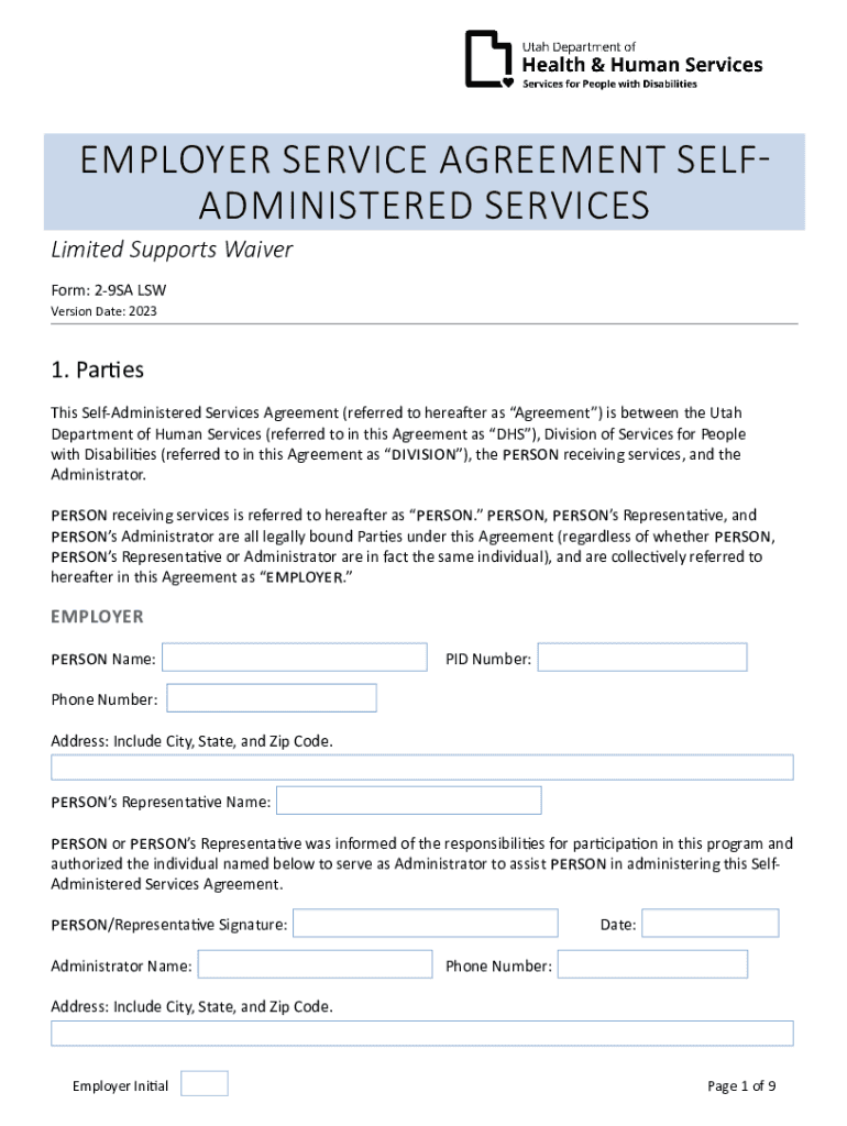 Get the free Employer Service Agreement (CSW) EMPLOYER Initial Date - dspd utah