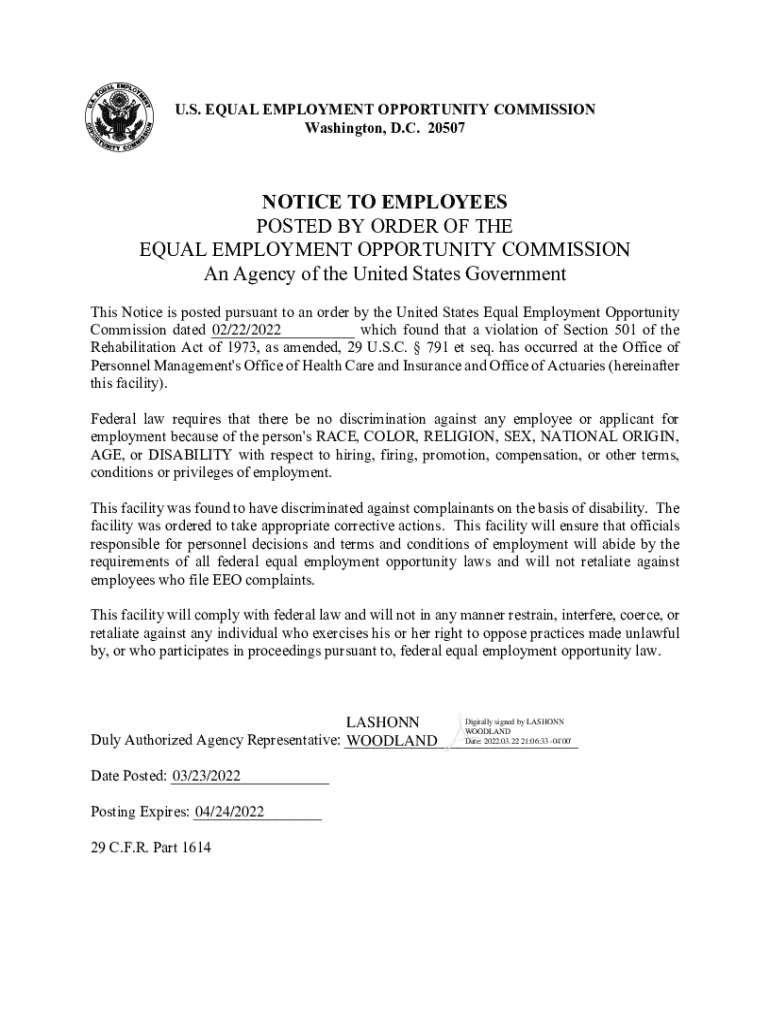 Get the free NOTICE TO EMPLOYEES POSTED BY ORDER OF THE EQUAL ...