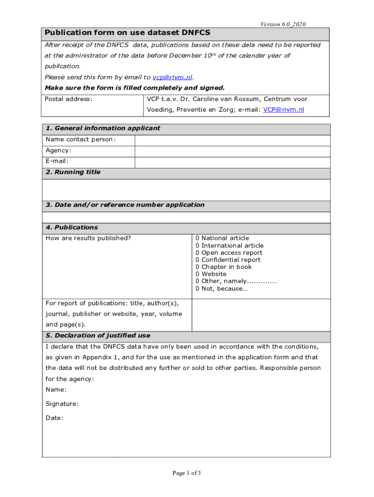 Publication form on use dataset DNFCSVersion 6.0_2020After receipt of the DN FCS data, publications based on these data need to be reported at the administrator of the data before December 10th of