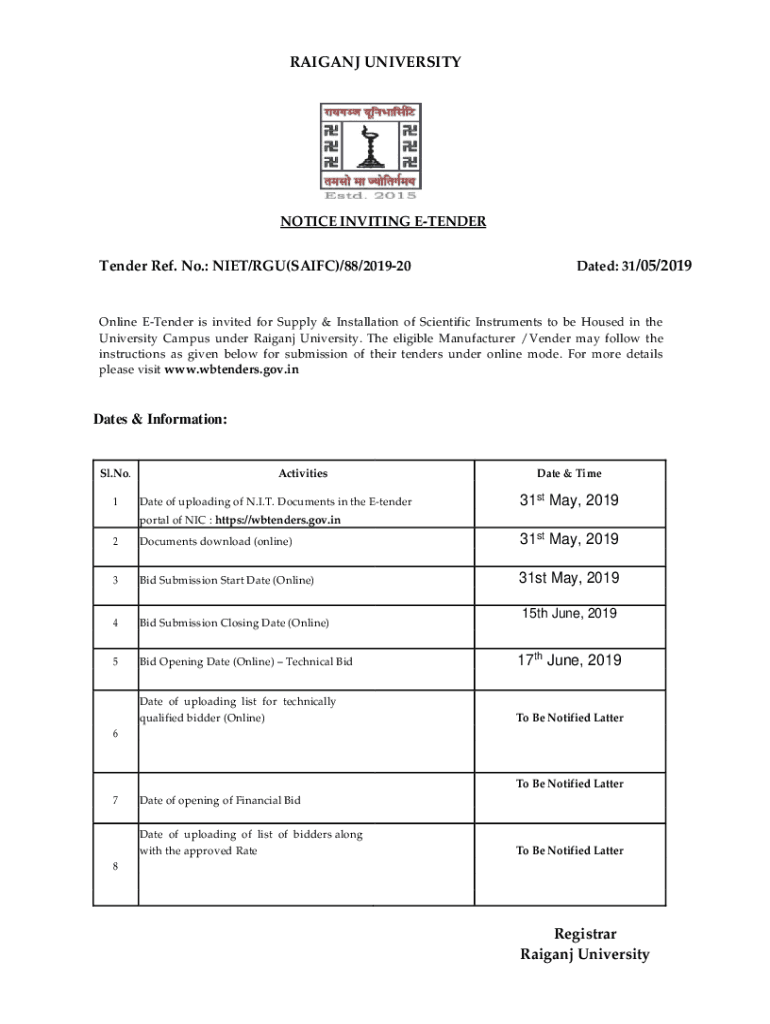 Notice Inviting E-Tender is not the form you're looking for?Search for another form here.