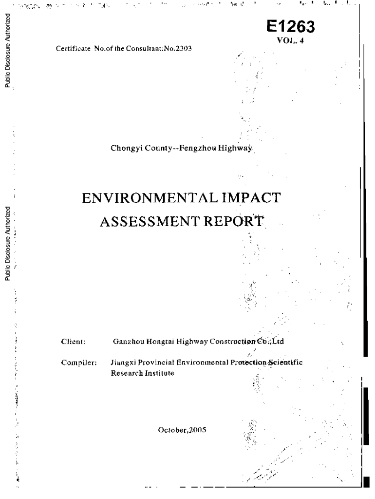 VOL. 4Certificate No. Of the Consultant:No.2303Public Disclosure AuthorizedPublic Disclosure AuthorizedE1263Chongyi CountyFengzhou Highway`Ct, Public Disclosure AuthorizedPublic Disclosure AuthorizedENVIRONMENTAL