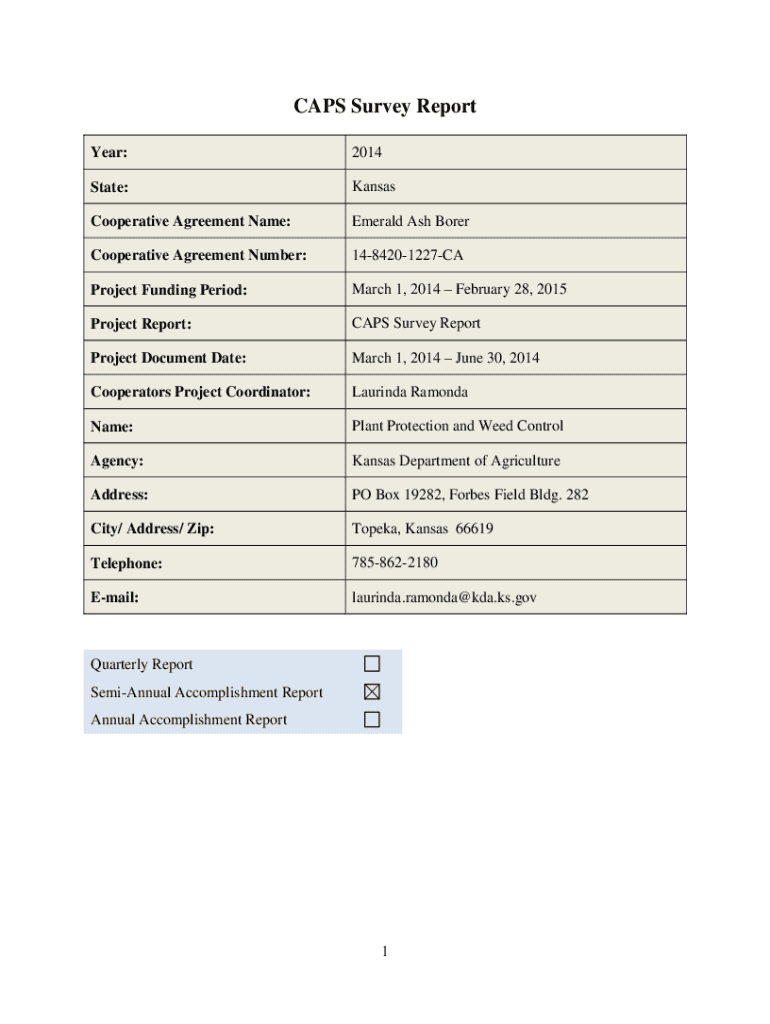 Get the free Online CAPS Survey Report Cooperative Agreement Number ...