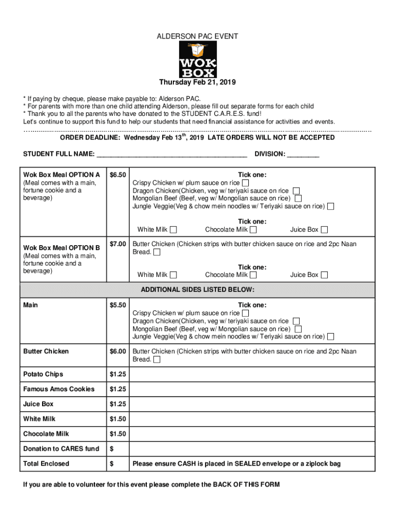 ANDERSON PAC EVENT Thursday Feb 21, 2019 * If paying by check, please make payable to: Anderson PAC. * For parents with more than one child attending Anderson, please fill out separate forms for each