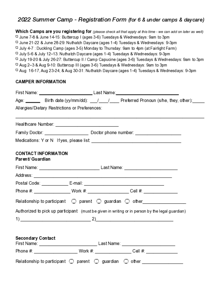 Fill out your 2022 summer camp u6 online with pdfFiller!