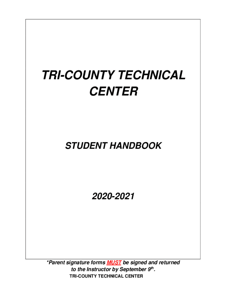 COUNTY TECHNICAL CENTERSTUDENT HANDBOOK20202021×Parent signature forms MUST be signed and returned to the Instructor by September 9th. COUNTY TECHNICAL CENTERStudent Handbook Table of Contents Page