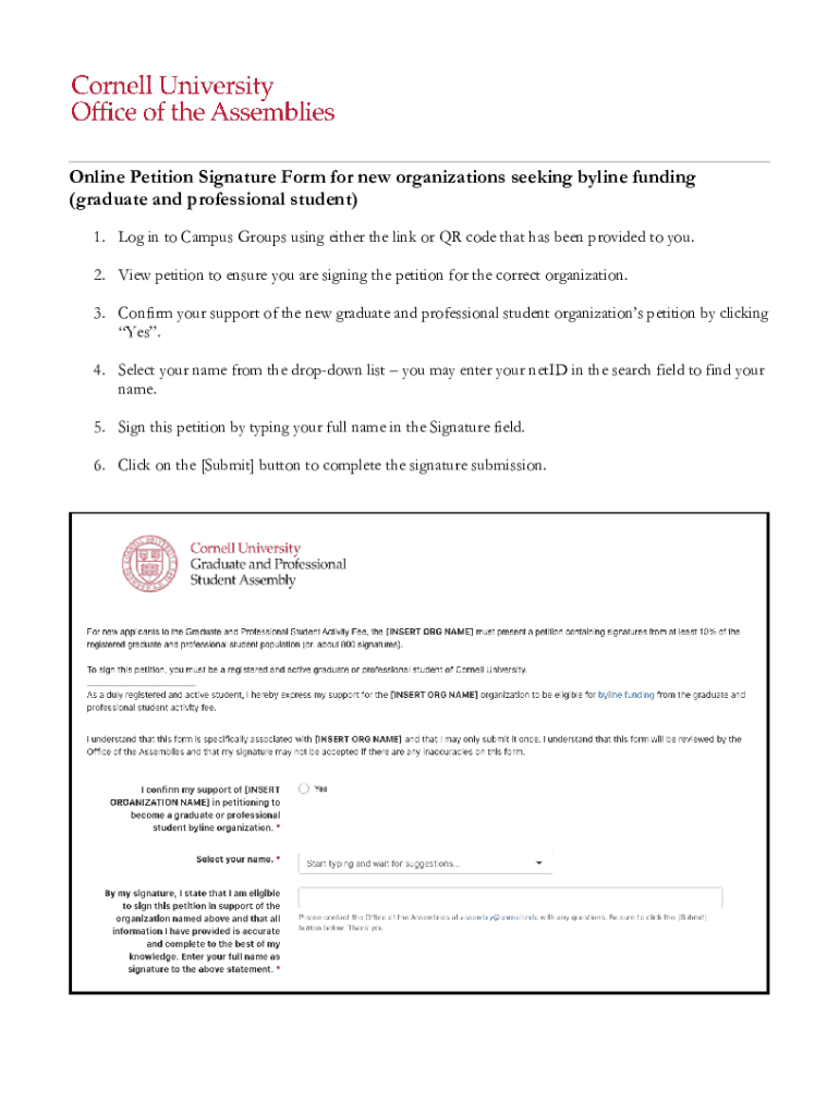 Any individual or group who wishes to create a petition and gather signatures online is required to file the assemblycornelledusitesdefaultonline petition signature form.
