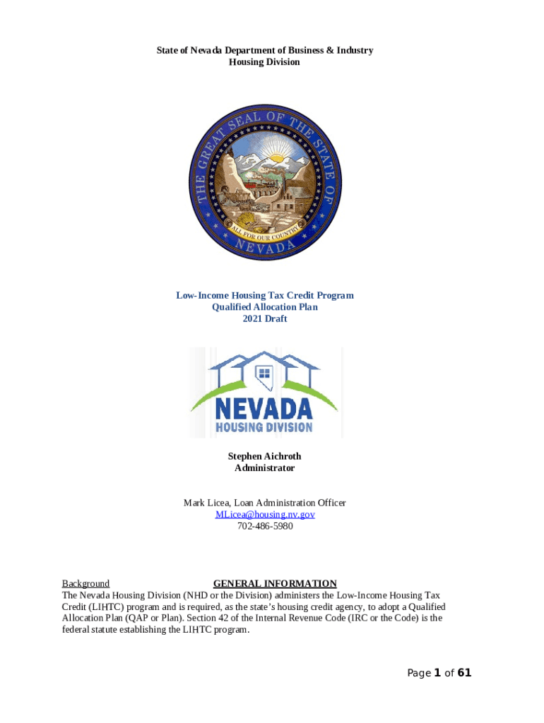 Instructions for the form Nevada Housing Division Low Income Housing Tax Credit Compliance Manual