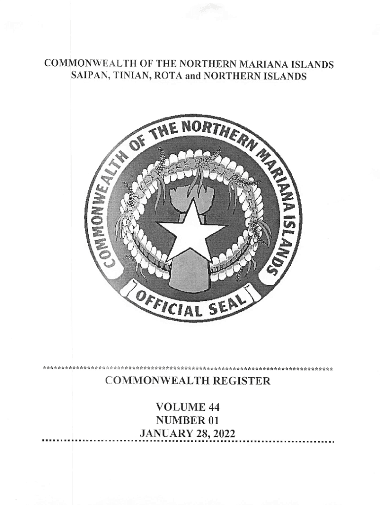 COMMON WEALTH OF THE NORTHERN MARIANA ISLANDS SAIPH N, Tl NISAN, ROTA and NORTHERN ISLANDS************* ********************************************* ********************COMMONWEALTH REGISTER VOLUME