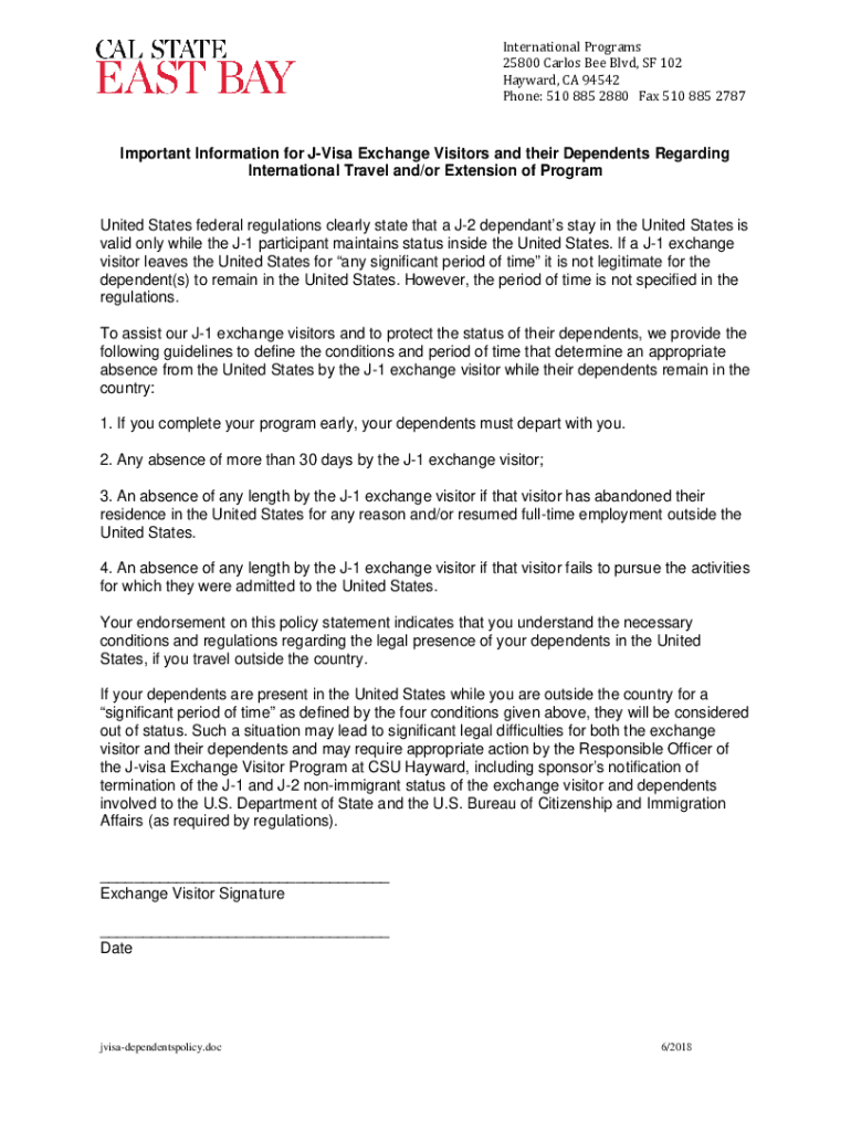 International Programs 25800 Carlos Bee Blvd, SF 102 Hayward, CA 94542 Phone: 510 885 2880 Fax 510 885 2787Important Information for Visa Exchange Visitors and their Dependents Regarding International