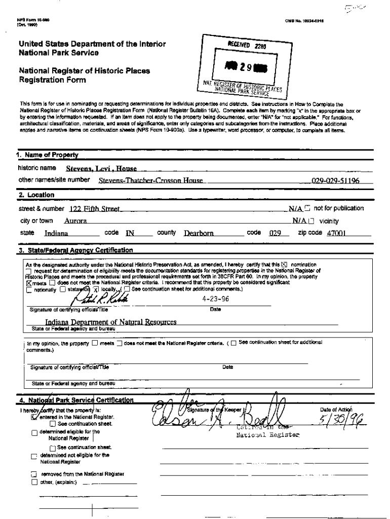NFS Form 10900 (Octavo)OMB No, 100244018United States Department of the Interior National Park Service2280zsmNational Register of Historic Places Registration Forms form is for use in nominating or
