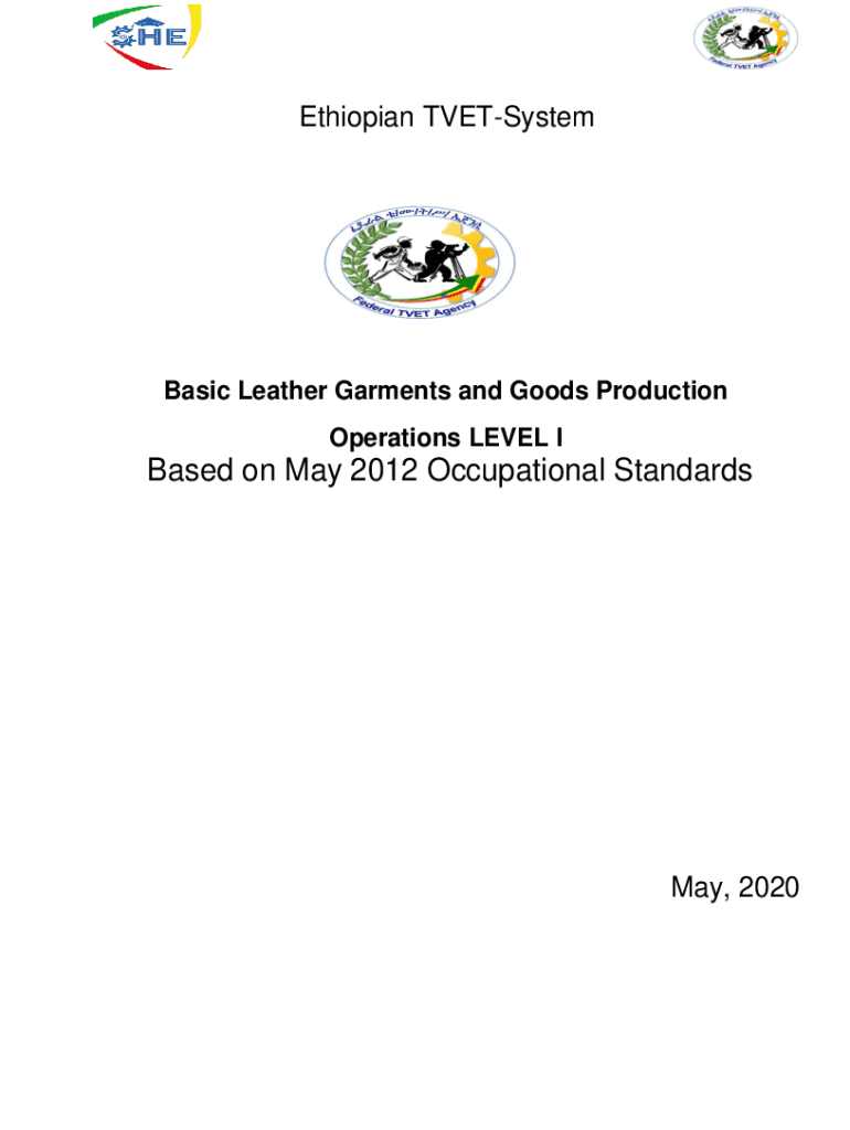 Ethiopian TVETSystemBasic Leather Garments and Goods Production Operations LEVEL Based on May 2012 Occupational Standards May, 2020Module Title: Applying Quality Standards TTL Code: IND BLG1 M10 TTL