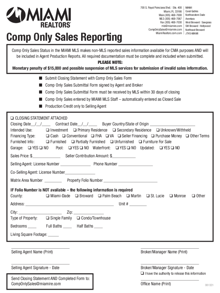 Comp Only Sales Reporting700 S. Royal Poinciana Blvd. | Ste. 400 Miami, FL 33166 Main (305) 4687000 MLS (305) 4687067 Fax (305) 4687030 mls@miamire.com CompOnlySales@miamire.com MiamiRealtors.com.command