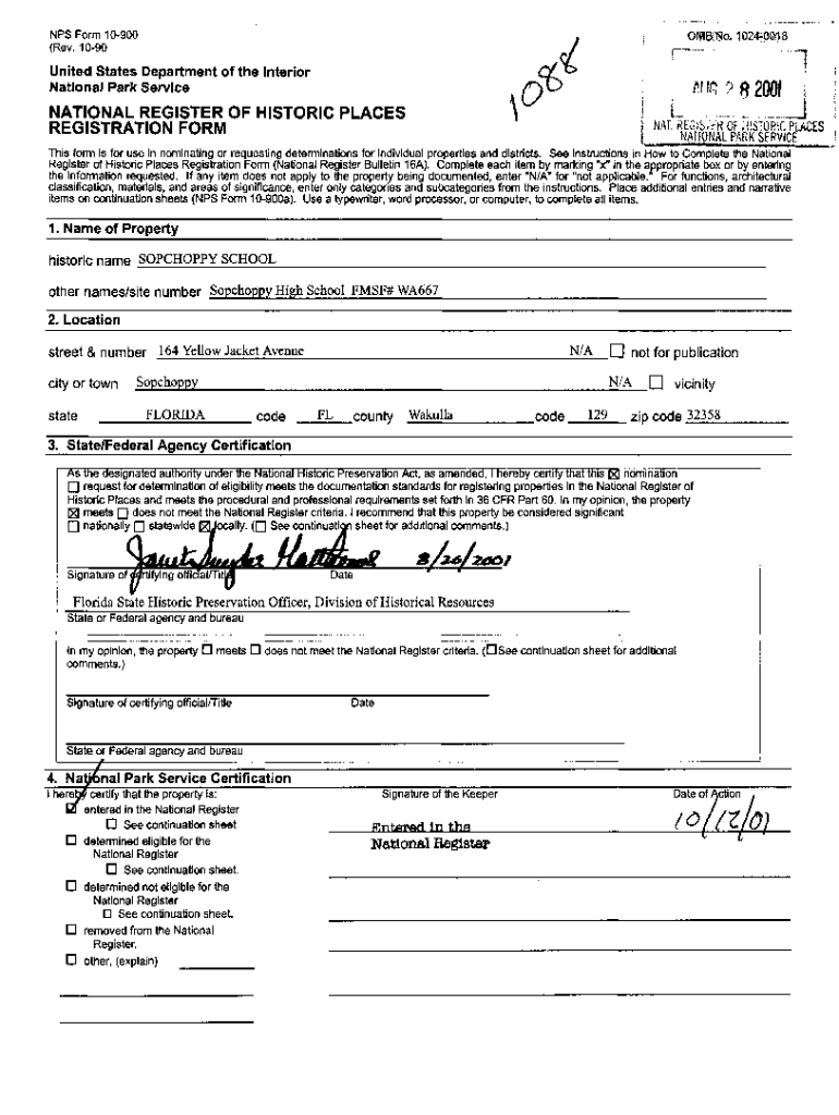 102410008NPS Form 10900 (Rev. 1090United States Department of the Interior National Park Service1 I NAT. Region\'ER OF HISTORIC PLACES. ......NATIONAL REGISTER OF HISTORIC PLACES REGISTRATION FORMATION