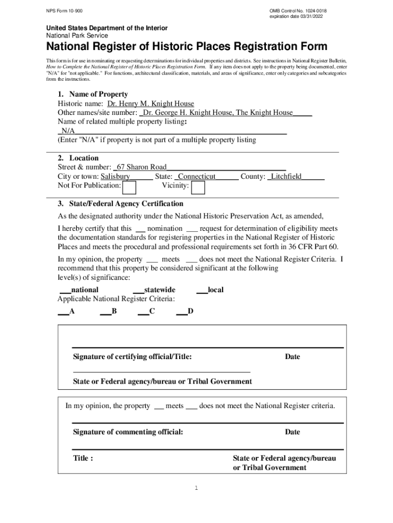 NPS Form 10900OMB Control No. 10240018 expiration date 03/31/2022United States Department of the Interior National Park ServiceNational Register of Historic Places Registration Form This form is for