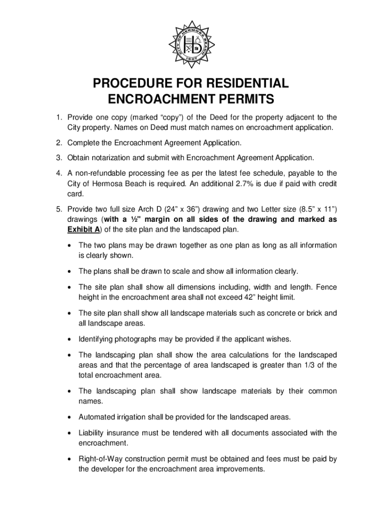 PROCEDURE FOR RESIDENTIAL ENCROACHMENT PERMITS 1. Provide one copy (marked copy) of the Deed for the property adjacent to the City property. Names on Deed must match names on encroachment application.