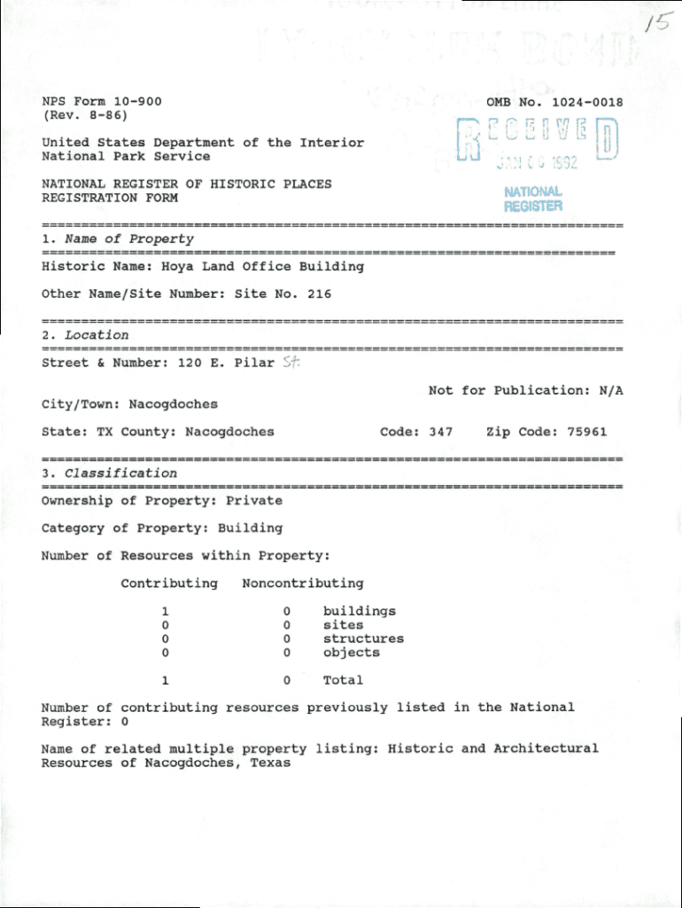 NPS Form 10900 (Rev. 886)OMB No. U n i t e d S t a t e s Department o f t h e I n t e r i o r N a t i o n an l Park S e r v i c e10240018UJNATIONAL REGISTER OF HISTORIC PLACES REGISTRATION FORMATION