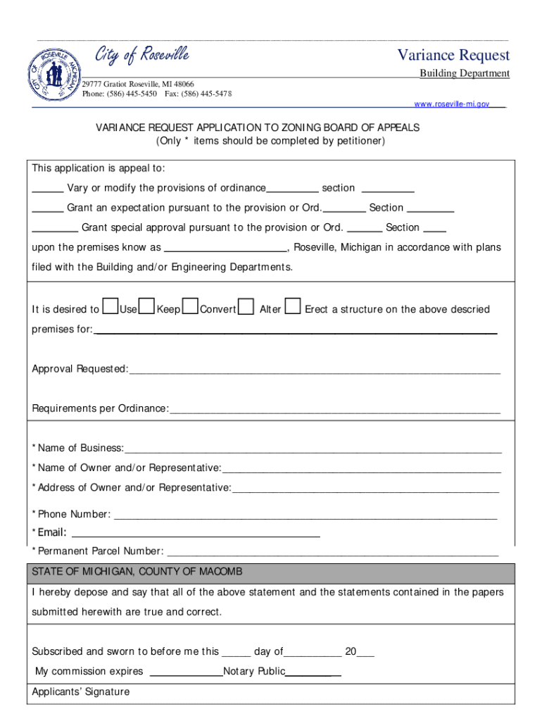 pH Phone: (586) 4455450 Fax: (586) 4455478__ www.rosevillemi.gov___VARIANCE REQUEST APPLICATION TO ZONING