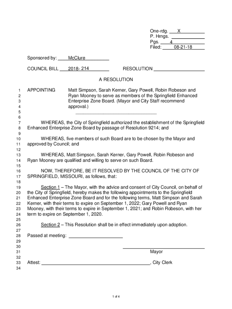 Oneida. X P. Hangs. Pgs. 4 Filed: 082118 Sponsored by:McClureCOUNCIL BILL2018 214RESOLUTION A RESOLUTION1 2 3 4 5 6 7 8 9 10 11 12 13 14 15 16 17 18 19 20 21 22 23 24 25 26 27 28 29 30 31 32 33 34APPOINTINGMatt