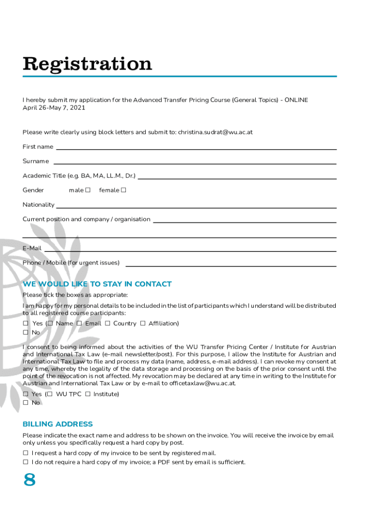 Advanced Transfer Pricing Course is not the form you're looking for?Search for another form here.