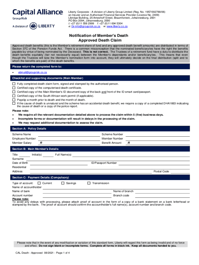 Get the free Notification of Member's Death (Approved Fund)