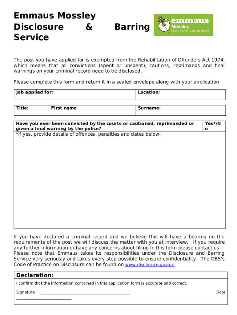 What is Emmaus Mossley Disclosure & Barring Service - emmaus org Form?