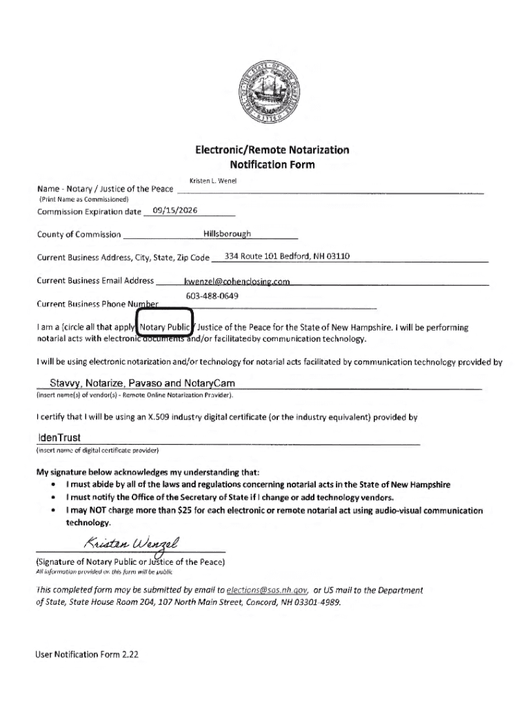Get the free Notification Form - sos nh