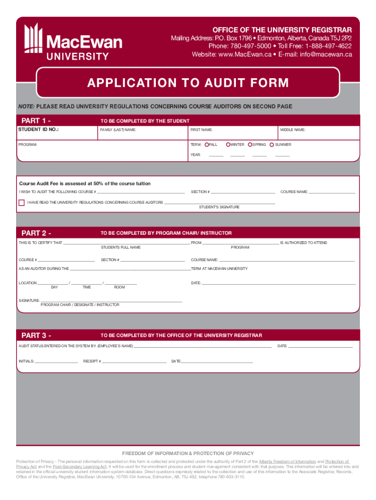 Get the free Application to Audit Form - MacEwan University. Application to Audit Form - MacEwan ...