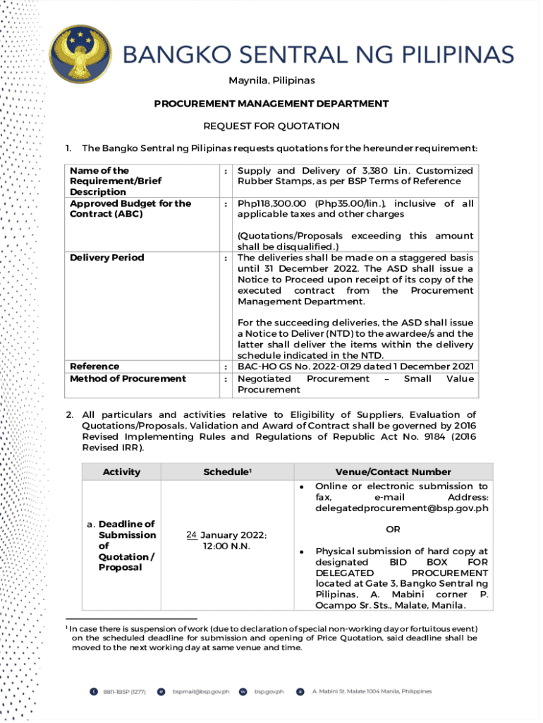 1. The Bangkok Central NG Filipinas requests quotations for the hereunder requirement:Name of the