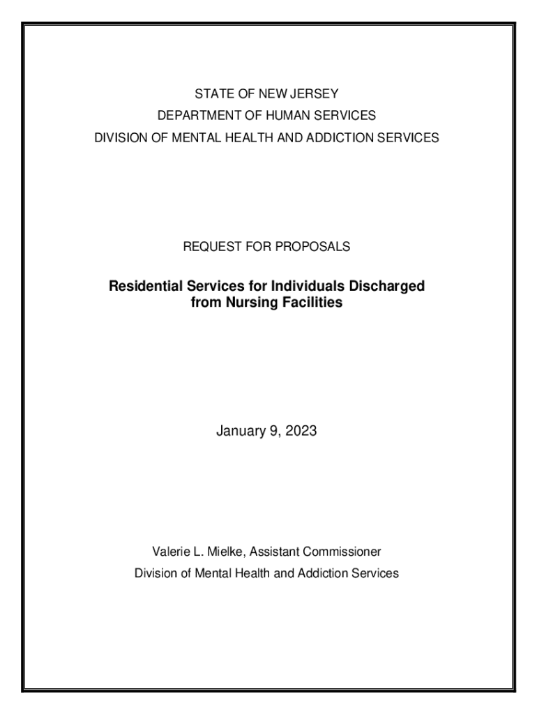 STATE OF NEW JERSEY DEPARTMENT OF HUMAN SERVICES DIVISION OF MENTAL HEALTH AND ADDICTION SERVICESREQUEST FOR PROPOSALSResidential Services for Individuals Discharged from Nursing Facilities January