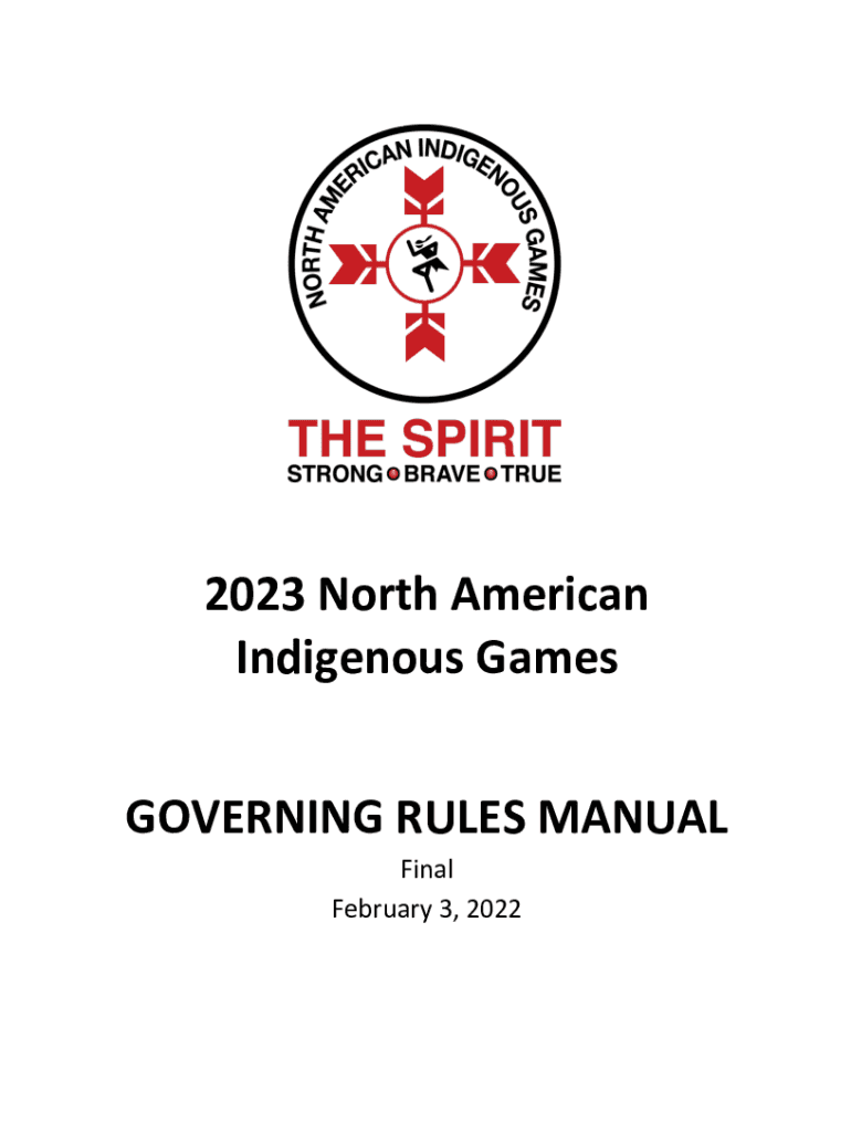 2023 North American Indigenous Games GOVERNING RULES MANUAL Final February 3, 20222023 North American Indigenous Games GOVERNING RULES MANUAL TABLE OF CONTENTS INTRODUCTION ....................................................................................................................................................