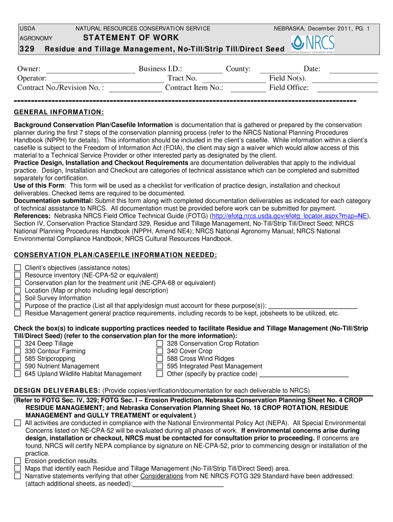 Get the free NE329 Residue and Tillage Management No Till Statement of Work SOW NE 329 Residue an...