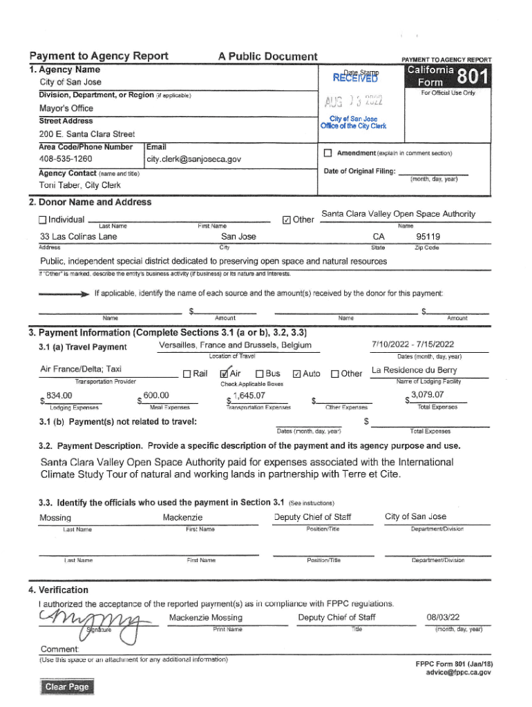 A Public DocumentPayment to Agency Report 1. Agency Repayment TO AGENCY REPORTCaliforniaRmmCity of San Reform For Official Use OnlyDivision, Department, or Region (if applicable)AUG J 3 22Mayor\'s