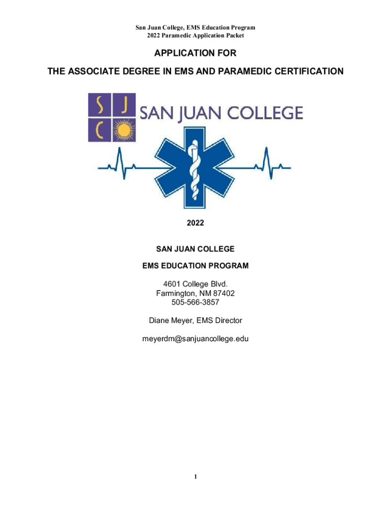 Get the free Emergency Medical Services Course Plans - San Juan College
