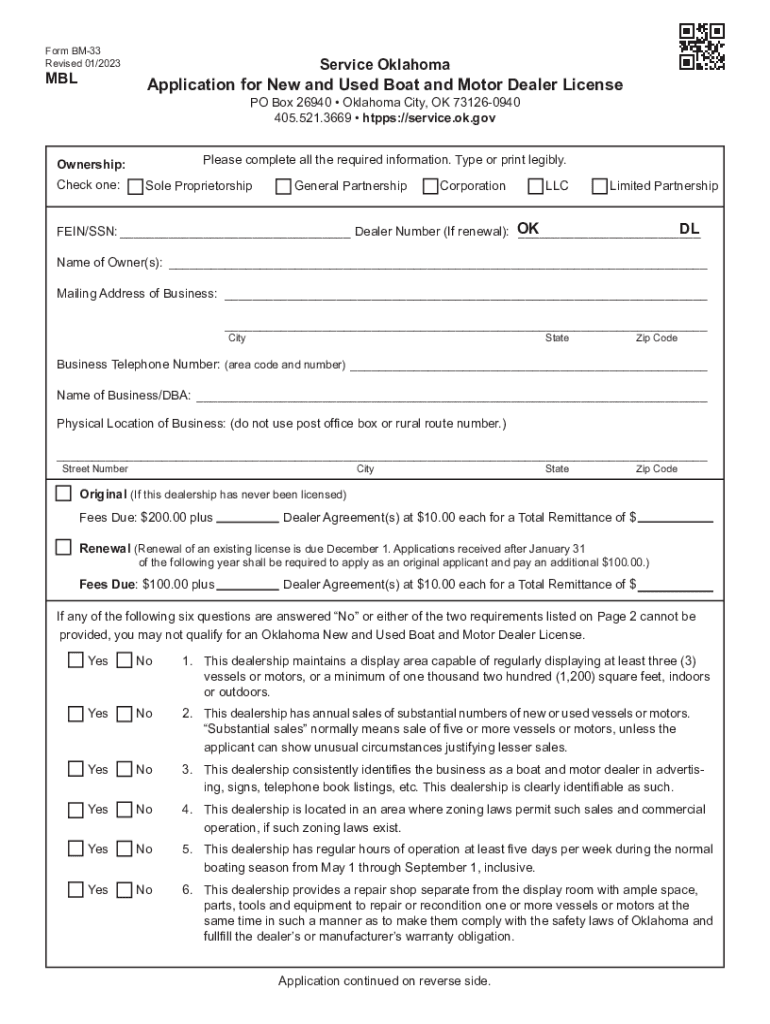Revised 01/2023MBLService OklahomaApplication for New and Used Boat and Motor Dealer License