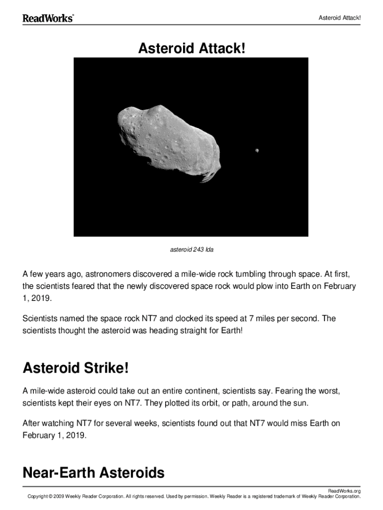 Asteroid Attack! Asteroid Attack!asteroid 243 Idea few years ago, astronomers discovered a mile wide rock tumbling through space. At first, the scientists feared that the newly discovered space rock