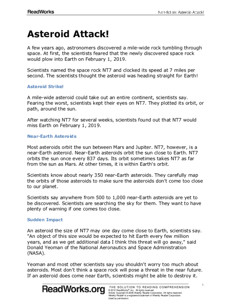Asteroid Attack! A few years ago, astronomers discovered a mile wide rock tumbling through space. At first, the scientists feared that the newly discovered space rock would plow into Earth on February