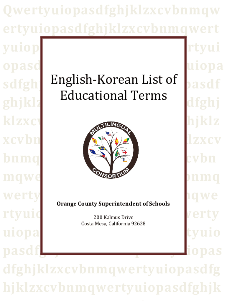 The purpose of the English-Korean list of educational is to facilitate communication and understanding between English-speaking and Korean-speaking individuals in the field of education.