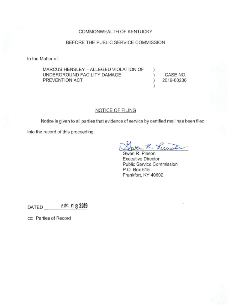 Get the free 20190808PSC Notice of Filing.pdf - KY PSC Home - psc ky