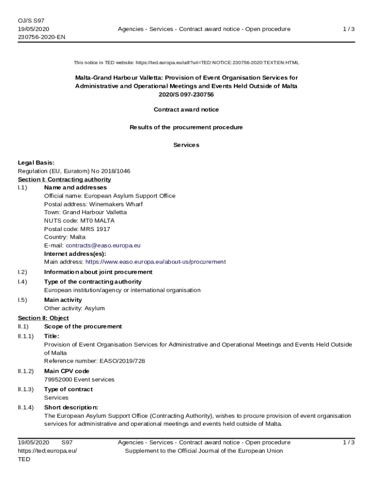 Get the free Services - Contract award notice - Open procedure 1 / 3 - EUAA