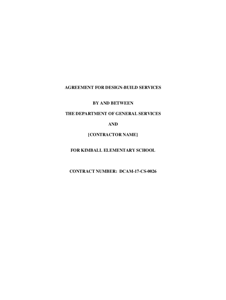 AGREEMENT FOR DESIGNBUILD SERVICES AND BETWEEN THE DEPARTMENT OF GENERAL SERVICES AND [CONTRACTOR NAME]FOR KIMBALL ELEMENTARY SCHOOLCONTRACT NUMBER: DCAM17CS0026DESIGNBUILD AGREEMENT FOR KIMBALL ELEMENTARY