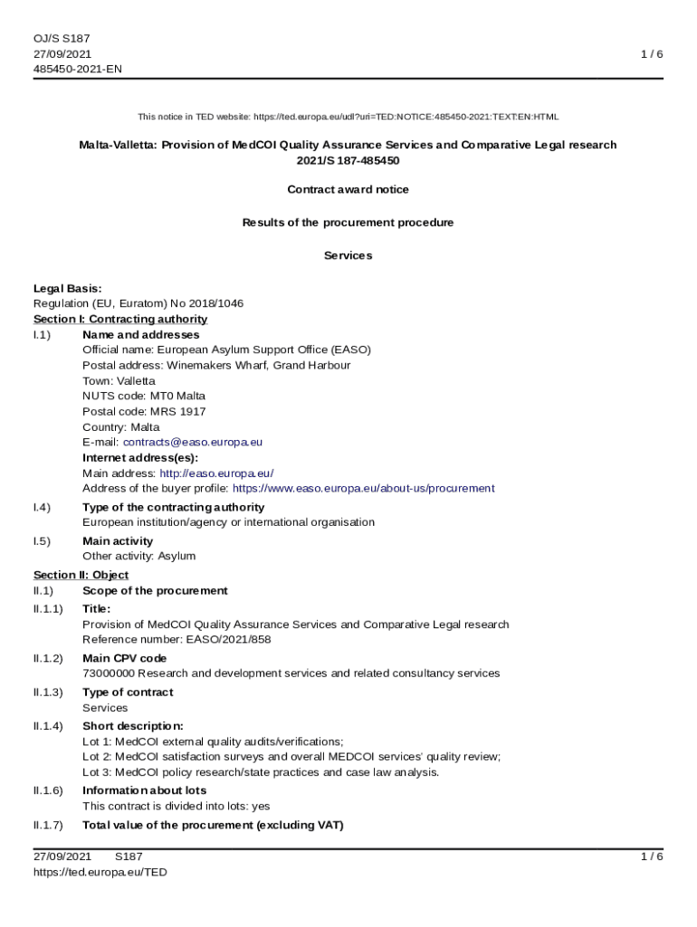 OJ/S S187 27/09/2021 4854502021EN1/6This notice in TED website: https://ted.europa.eu/udl?uriTED:NOTICE:4854502021:TEXT:EN:HTMLMaltaValletta: Provision of Med COI Quality Assurance Services and Comparative