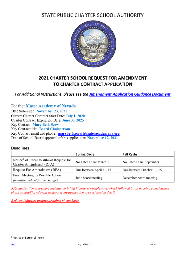 STATE PUBLIC CHARTER SCHOOL AUTHORITY2021 CHARTER SCHOOL REQUEST FOR AMENDMENT TO CHARTER CONTRACT APPLICATION For Additional Instructions, please see the Amendment Application Guidance Document For