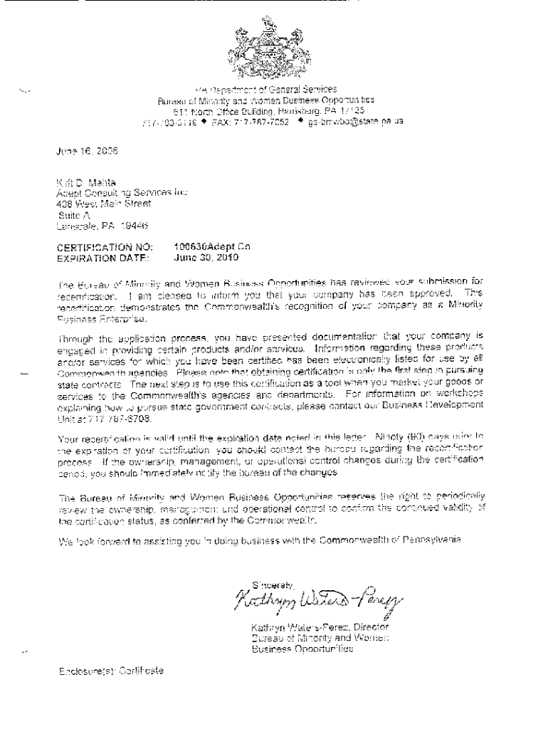 PROGENYHEALTH,1 DEUVERINGHEALTHY DUTCOMESCynthia T. Weizmann, MS Vice President APS Healthcare 44 South Broadway Suite 1200 White Plains, NY 10601Please accept this letter as confirmation that ProgenyHealth,