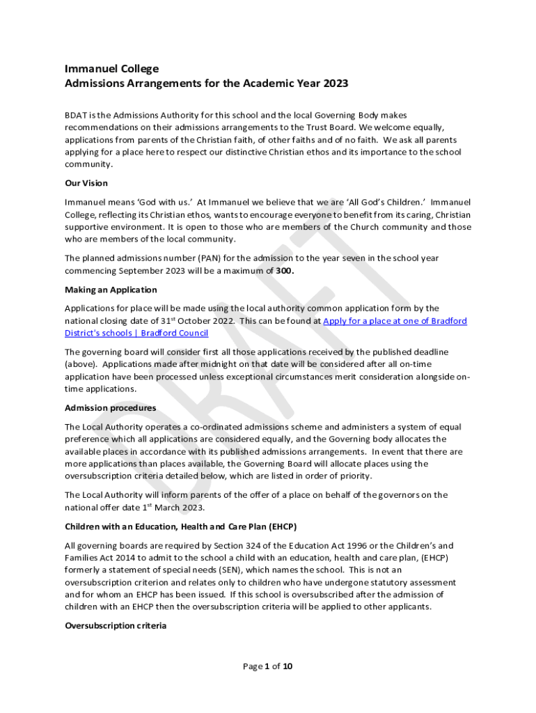 Get the free Immanuel College Admissions Arrangements for the ...