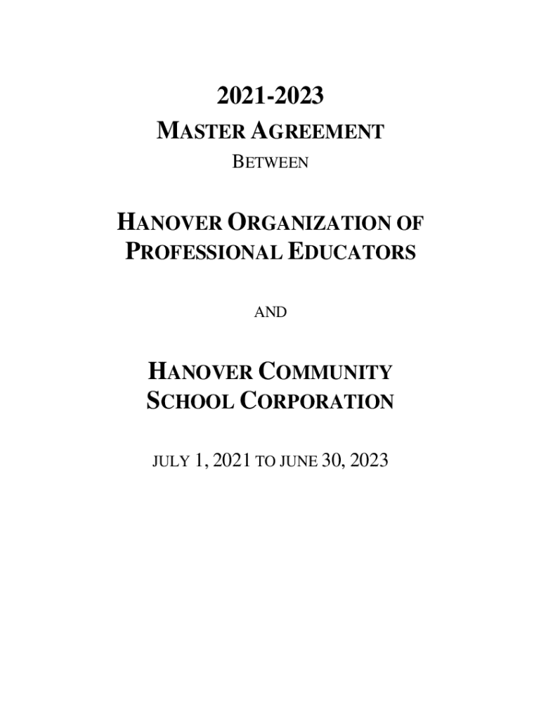Master Agreement Hanover Organization is a contractual agreement that outlines the terms and conditions between two parties.