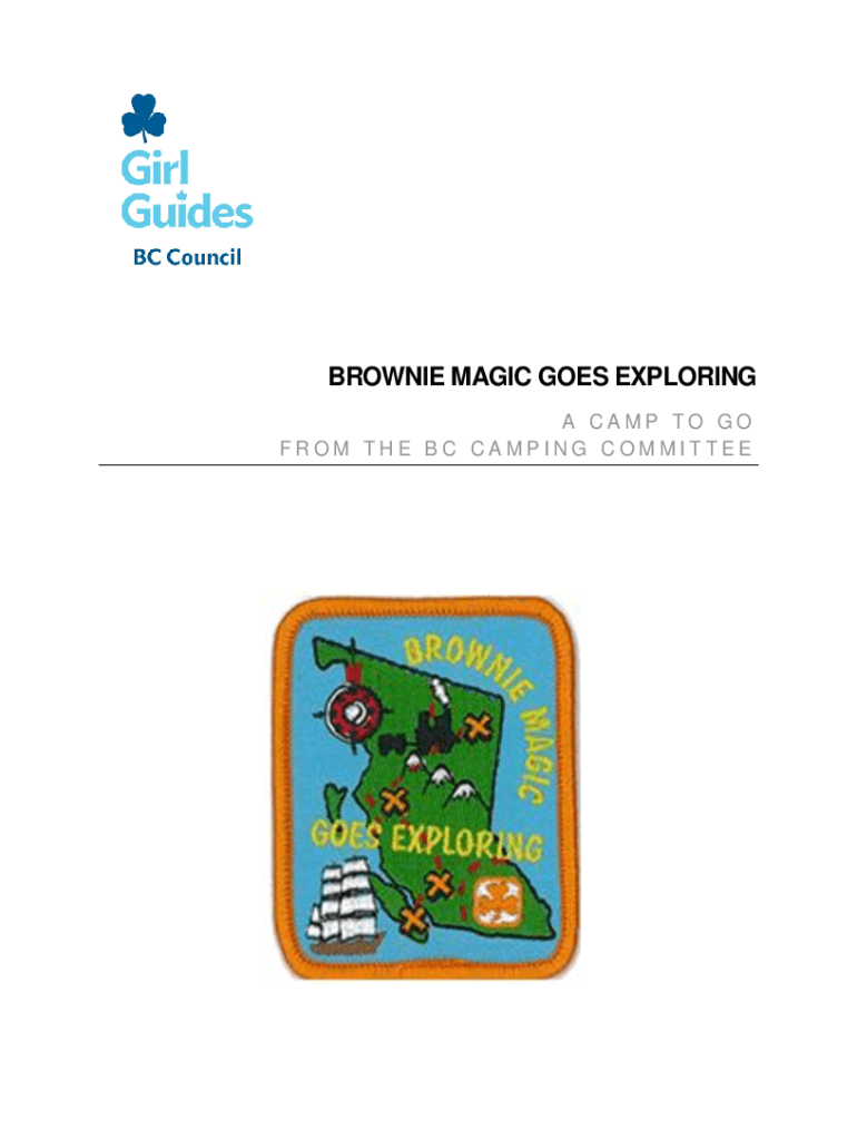 BROWNIE MAGIC GOES EXPLORING A CAMP TO GO FROM THE BC CAMPING COMMITTEE BROW NICE MAGIC GOES E XML Orangeade 2Copyright 2019 Girl Guides of CanadaGuides du Canada, British Columbia Council, 107252